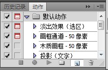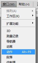 一、首先我們得制作自己需要的動作命令第一步,先打開Photoshop,選中“窗口→動作”命令,打開動作命令窗口。此時,動作命令欄里只有默認(rèn)命令序列和一些默認(rèn)動作。