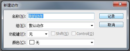 第二步,執(zhí)行“文件→打開”動作,任意打開一張圖片。單擊動作命令欄“創(chuàng)建新動作”快捷命令圖標(biāo),此時就會在“默認(rèn)動作”的序列下創(chuàng)建新動作,出現(xiàn)的命令對話框,在“名稱”欄中輸入“我的動作”,然后單擊[記錄]按鈕結(jié)束。