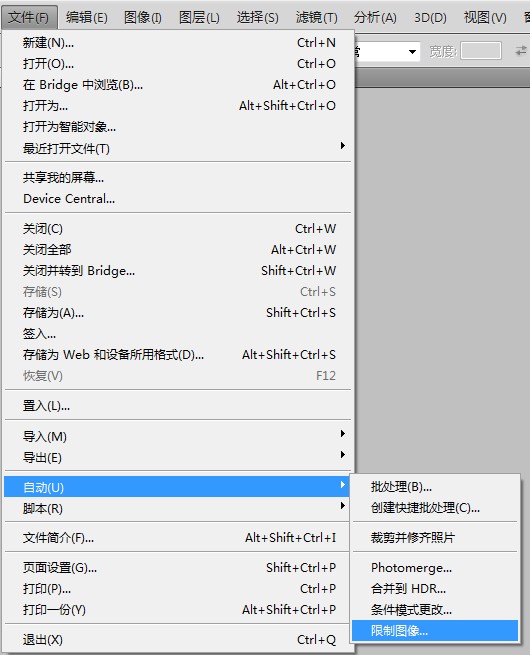 第三步,開始創(chuàng)建各項需要的動作(計算機會自動記錄你的各個動作,為節(jié)省批處理時間,最好每個動作都是事先準(zhǔn)備好,被記錄的動作都能一步到位):1. 限制圖片大小:執(zhí)行“文件→自動→限制圖像”命令,根據(jù)需要設(shè)置好一系列參數(shù)后,單擊[好]