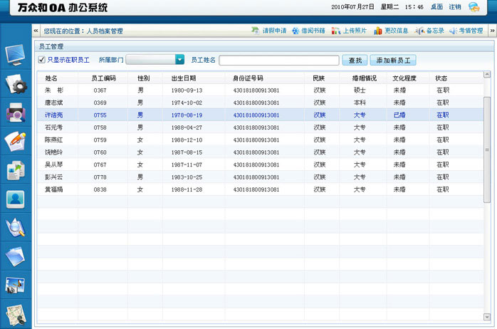 萬眾和網(wǎng)絡(luò)辦公系統(tǒng)的人員管理界面