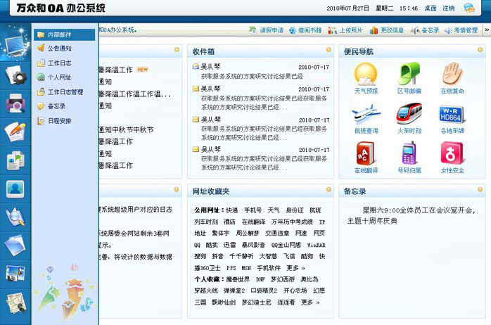 萬眾和網(wǎng)絡(luò)辦公系統(tǒng)的主界面二